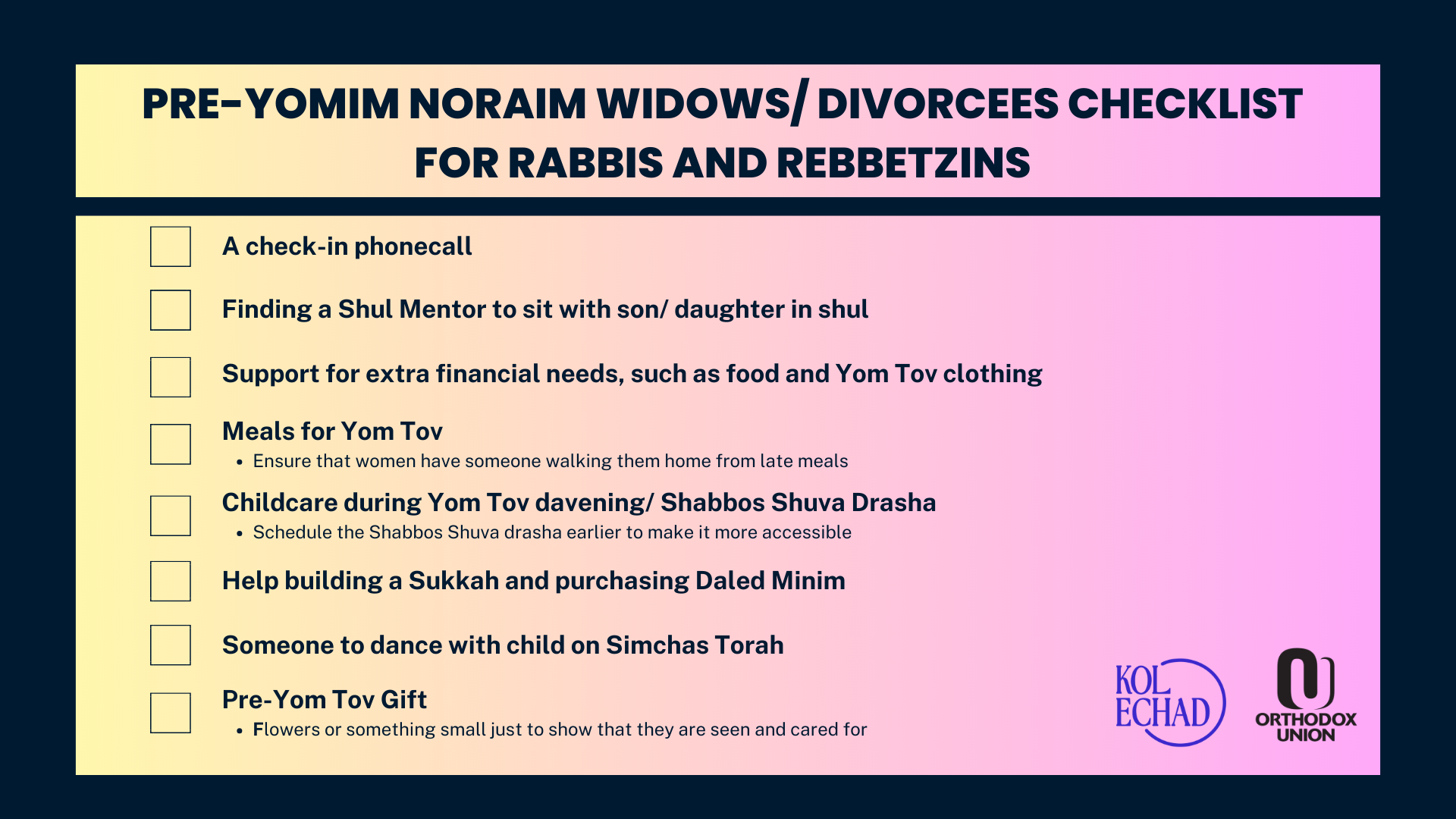 Checklist for Rabbis and Rebbetzins for Yom Tov
