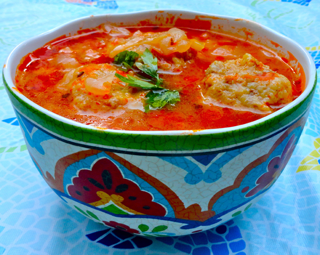Cabbage Soup with Matzoh Meatballs