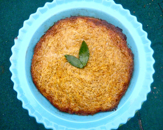 - Remove kugel from oven and pour off excess oil.