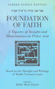 Foundation of Faith, a commentary on Pirkei Avot based on the teachings of Rabbi Norman Lamm and edited by Rabbi Mark Dratch. Inspiring and profound, the commentary is a scintillating demonstration of Rabbi Lamm’s invaluable message for contemporary Jewry.