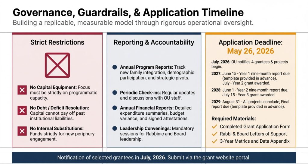 This three-year pilot will invest in a select cohort of high-capacity Orthodox synagogues that have demonstrated both a track record of growth and a clear readiness to engage individuals and families who are not yet fully connected to synagogue life.